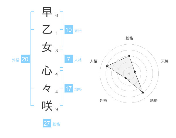 早乙女 心々咲さんを姓名の画数から五運を鑑定