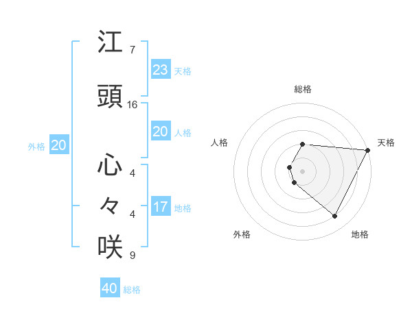 江頭 心々咲さんを姓名の画数から五運を鑑定