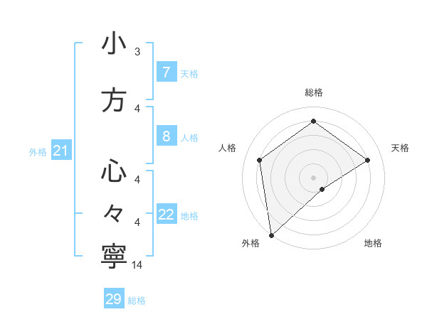 小方 心々寧さんを姓名の画数から五運を鑑定