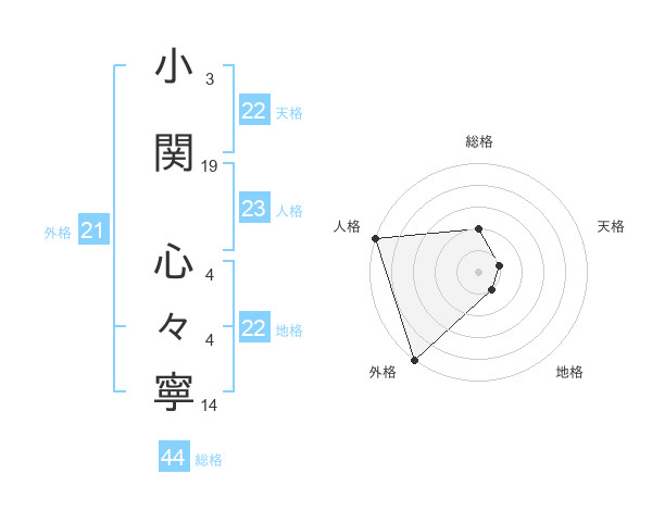 小関 心々寧さんを姓名の画数から五運を鑑定