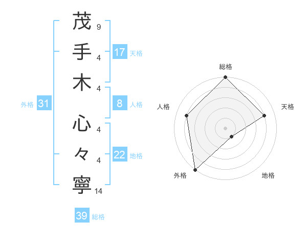 茂手木 心々寧さんを姓名の画数から五運を鑑定