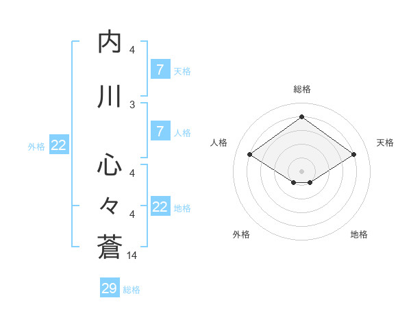内川 心々蒼さんの総格は29画の4点