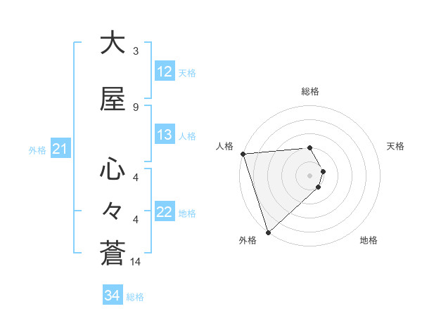 大屋 心々蒼さんの総格は34画の2点!