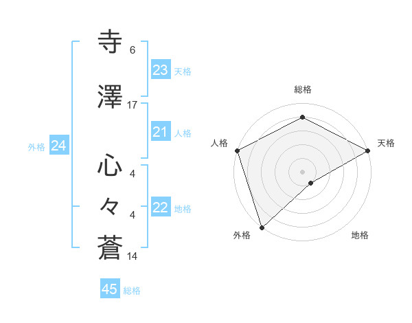 寺澤 心々蒼さんを姓名の画数から五運を鑑定