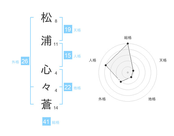 松浦 心々蒼さんを姓名の画数から五運を鑑定