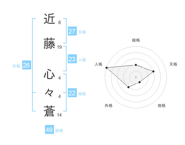 近藤 心々蒼さんを姓名の画数から五運を鑑定