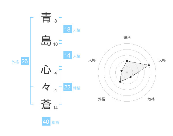 青島 心々蒼さんの総格は40画の2点!