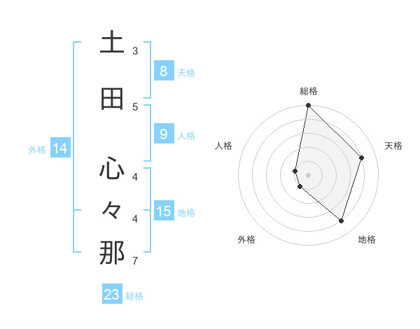 占い結果は姓名判断である以上、良い場合も悪い場合もありますが、決してお名前を誹謗中傷するものでなく、画数の自動計算によって得られたものです。また、本サイトの検索によって得られた鑑定結果で、第三者を誹謗中傷したり名誉を棄損するような行為を禁じます。