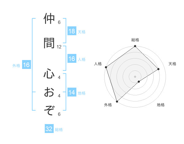 仲間 心おぞさんの外格は16画の5点!