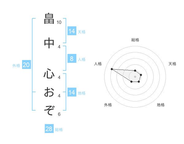 畠中 心おぞさんを姓名の画数から五運を鑑定
