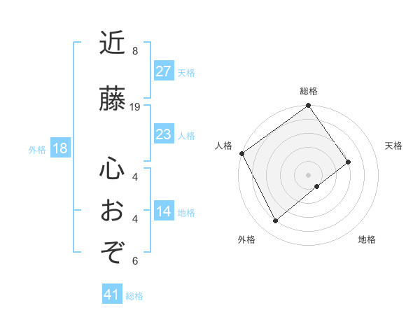 近藤 心おぞさんの総格は41画の5点!