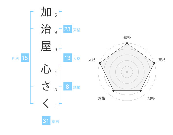 加治屋 心さくさんを姓名の画数から五運を鑑定