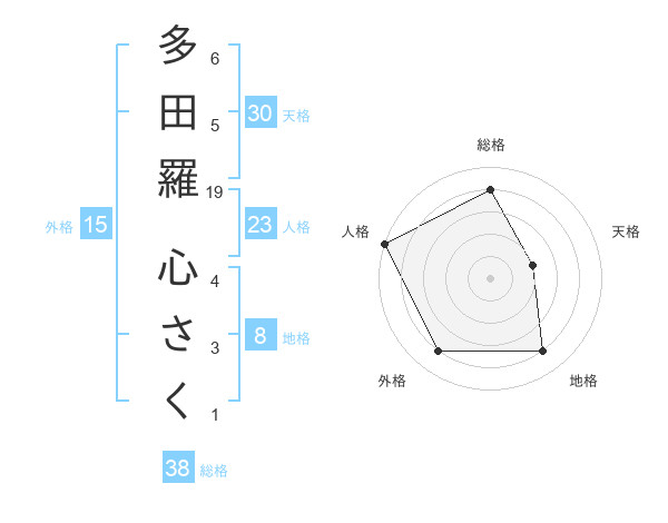 多田羅 心さくさんの総格は38画の4点!