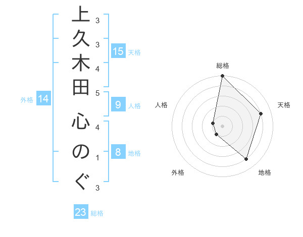 上久木田 心のぐさんを姓名の画数から五運を鑑定
