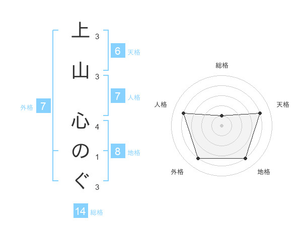 上山 心のぐさんを姓名の画数から五運を鑑定