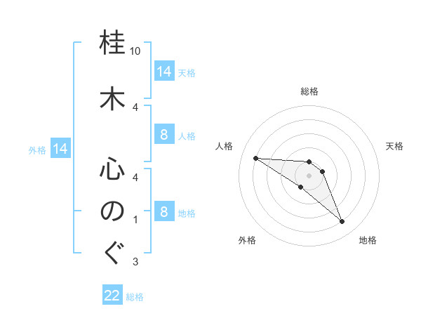 桂木 心のぐさんを姓名の画数から五運を鑑定