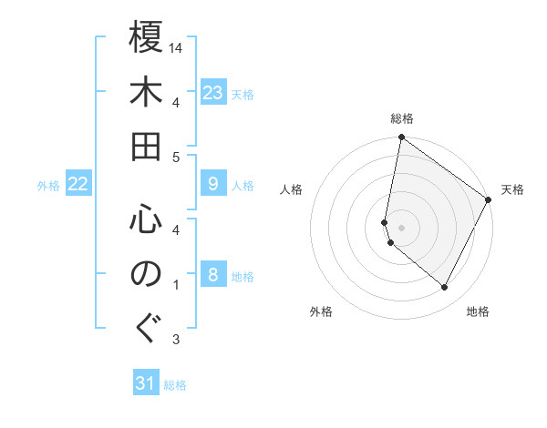 榎木田 心のぐさんを姓名の画数から五運を鑑定
