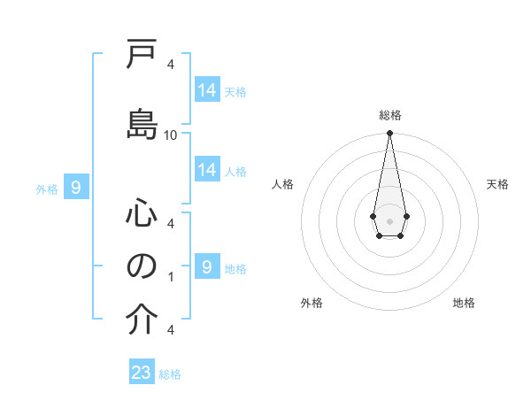 戸島 心の介さんを姓名の画数から五運を鑑定