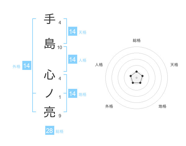 手島 心ノ亮さんを姓名の画数から五運を鑑定