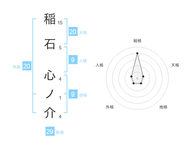 稲石 心ノ介さんの総格は29画の4点!