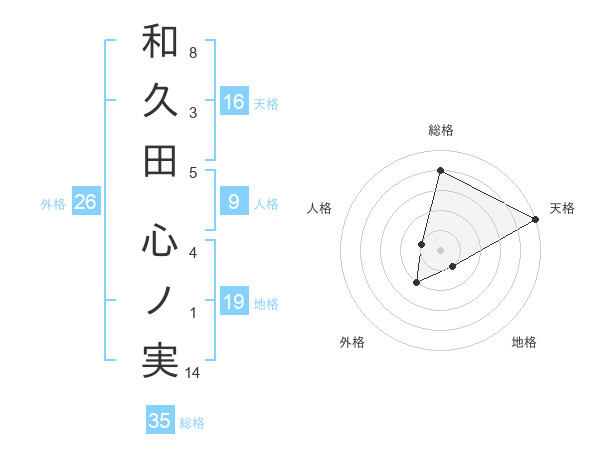 和久田 心ノ実さんを姓名の画数から五運を鑑定