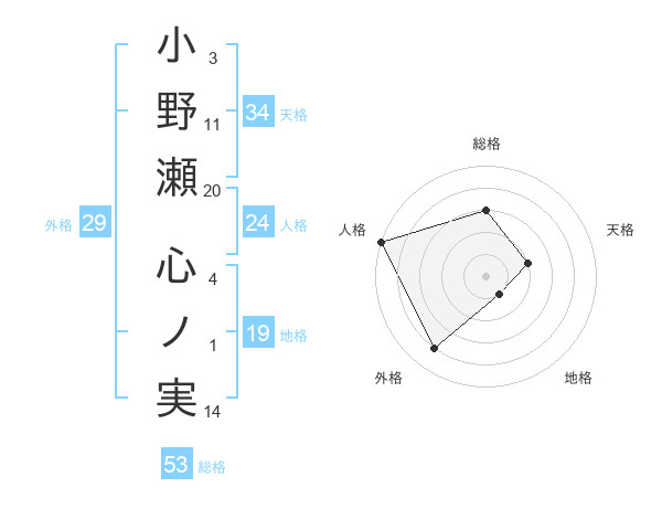小野瀬 心ノ実さんを姓名の画数から五運を鑑定