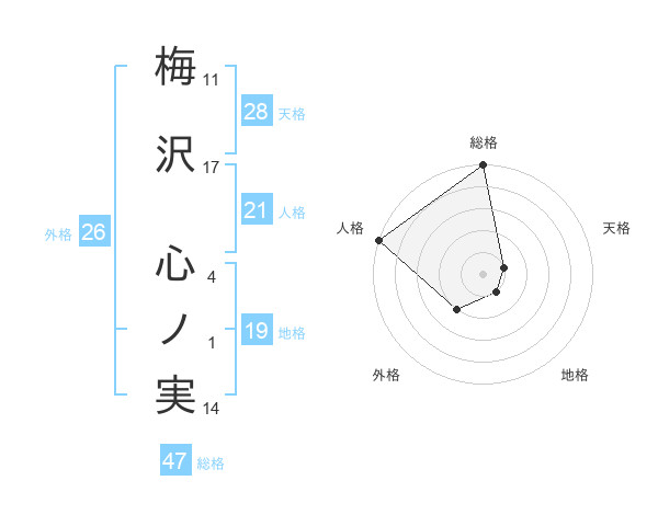 梅沢 心ノ実さんを姓名の画数から五運を鑑定