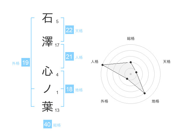 石澤 心ノ葉さんの天格は22画の1点!