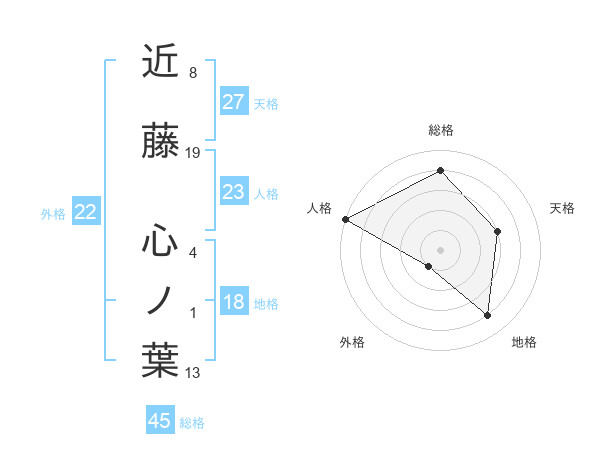 近藤 心ノ葉さんを姓名の画数から五運を鑑定