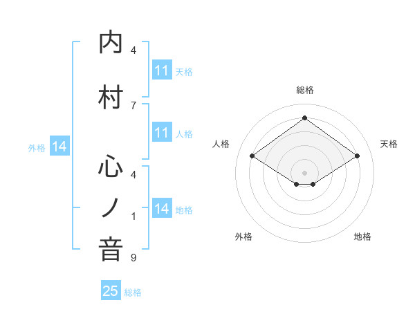 内村 心ノ音さんを姓名の画数から五運を鑑定
