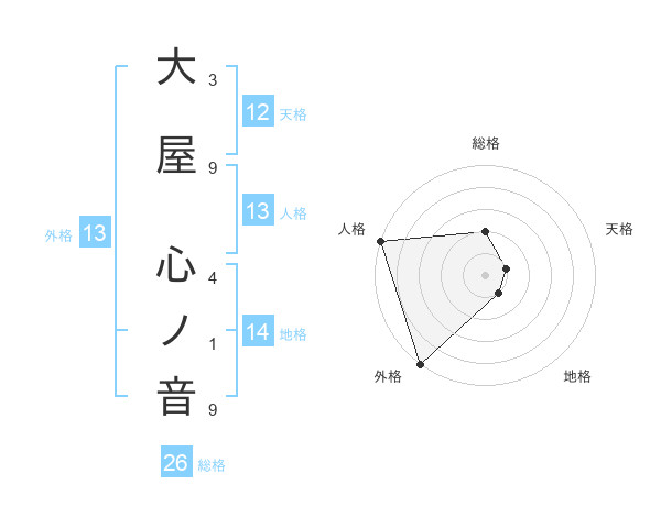 大屋 心ノ音さんの外格は13画の5点!