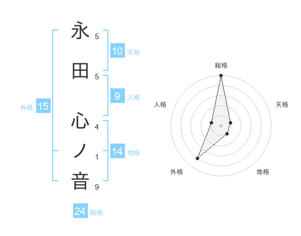 永田 心ノ音さんを姓名の画数から五運を鑑定