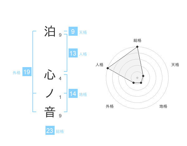 泊 心ノ音さんを姓名の画数から五運を鑑定