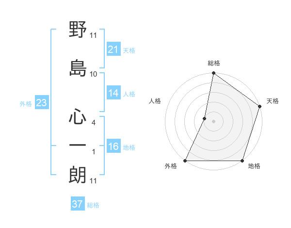 野島 心一朗さんを姓名の画数から五運を鑑定