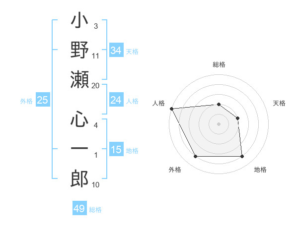 小野瀬 心一郎さんを姓名の画数から五運を鑑定