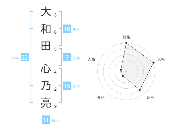 大和田 心乃亮さんを姓名の画数から五運を鑑定
