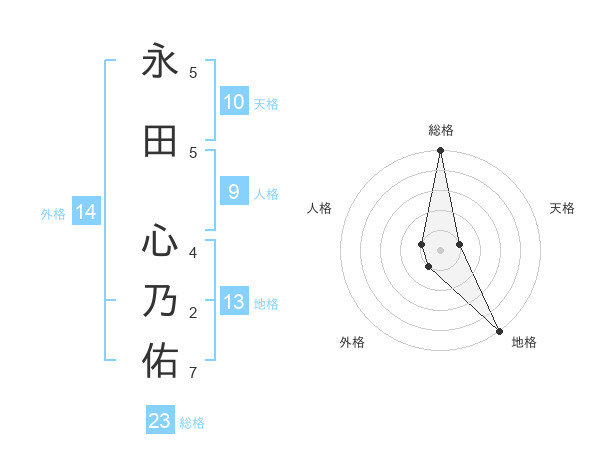 永田 心乃佑さんを姓名の画数から五運を鑑定