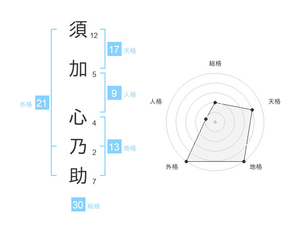 須加 心乃助さんの総格は30画の2点