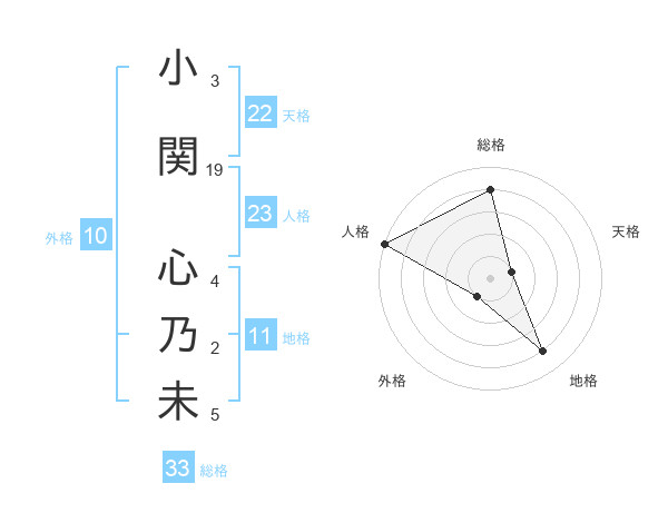 小関 心乃未さんの総格は33画の4点!