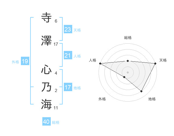 寺澤 心乃海さんの天格は23画の5点!
