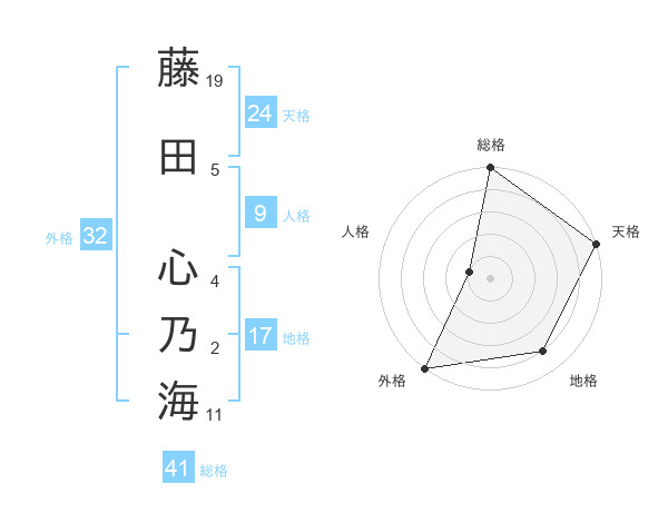 藤田 心乃海さんの総格は41画の5点