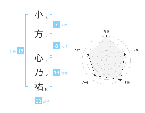 小方 心乃祐さんの総格は23画の5点!