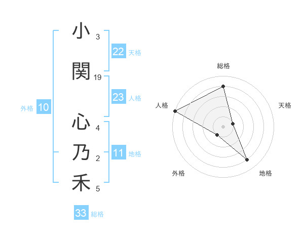 小関 心乃禾さんを姓名の画数から五運を鑑定