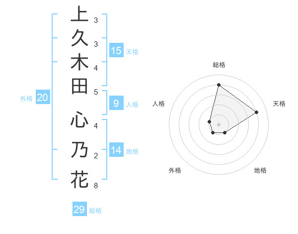 上久木田 心乃花さんを姓名の画数から五運を鑑定