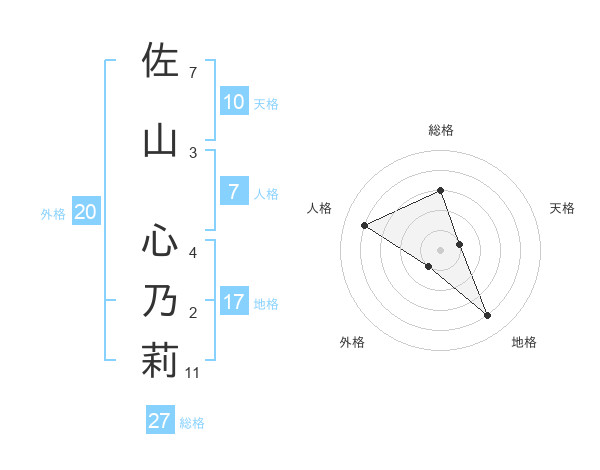 佐山 心乃莉さんを姓名の画数から五運を鑑定