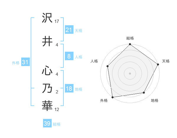 沢井 心乃華さんの外格は31画の5点!