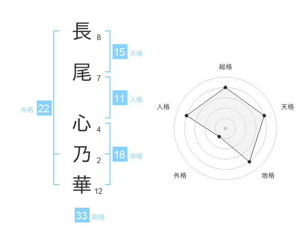 長尾 心乃華さんを姓名の画数から五運を鑑定