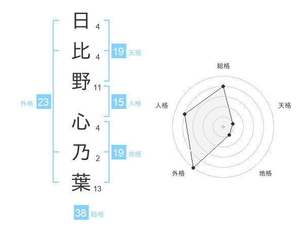 日比野 心乃葉さんの総格は38画の4点!