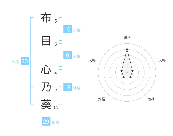 布目 心乃葵さんを姓名の画数から五運を鑑定