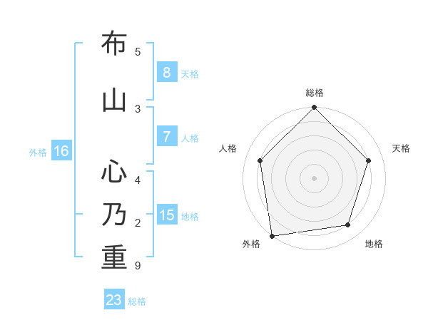 布山 心乃重さんを姓名の画数から五運を鑑定